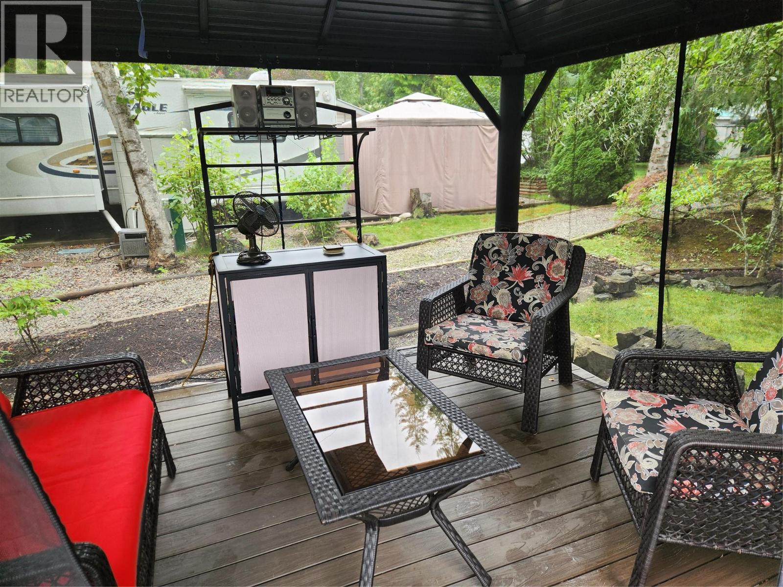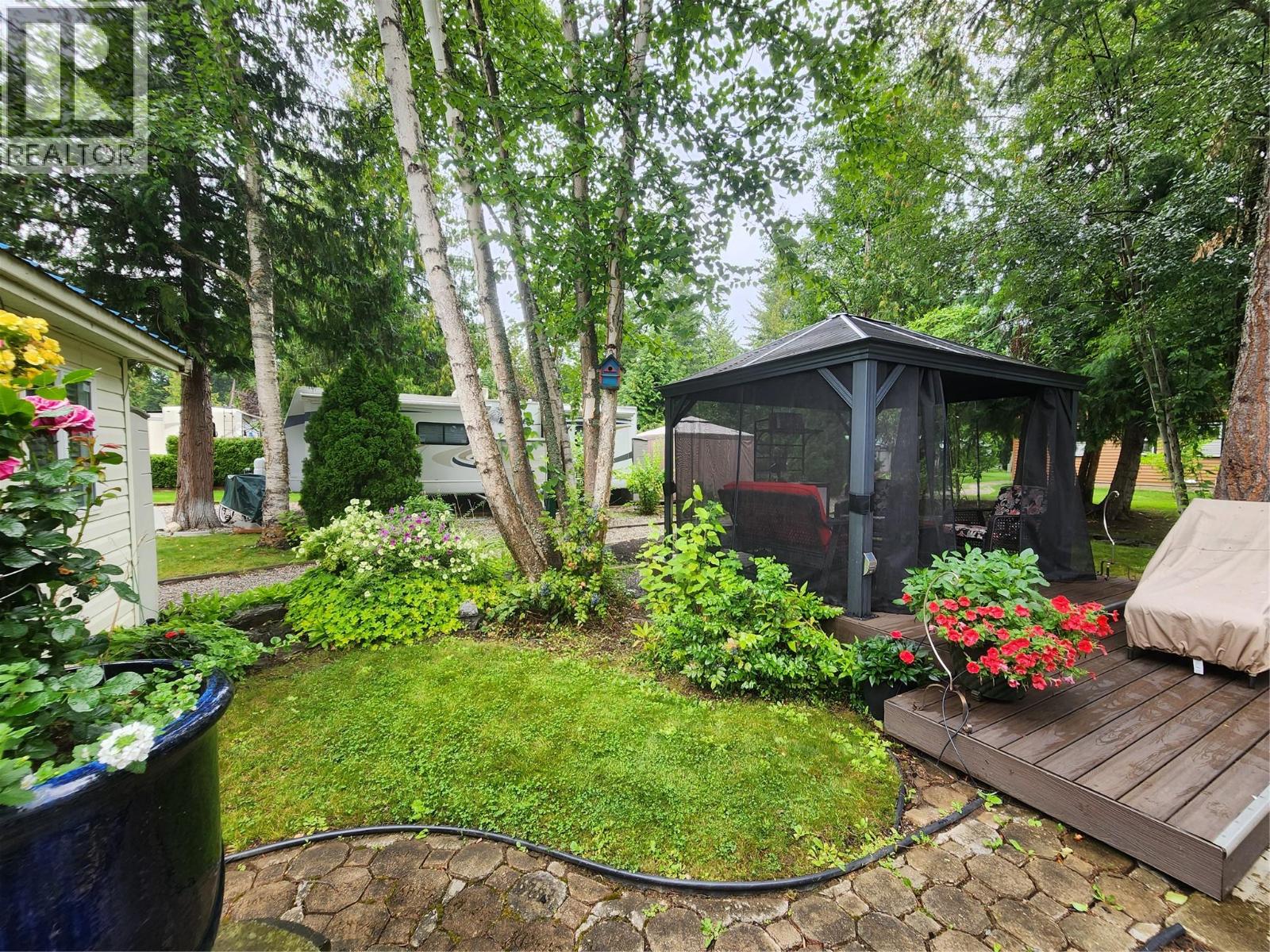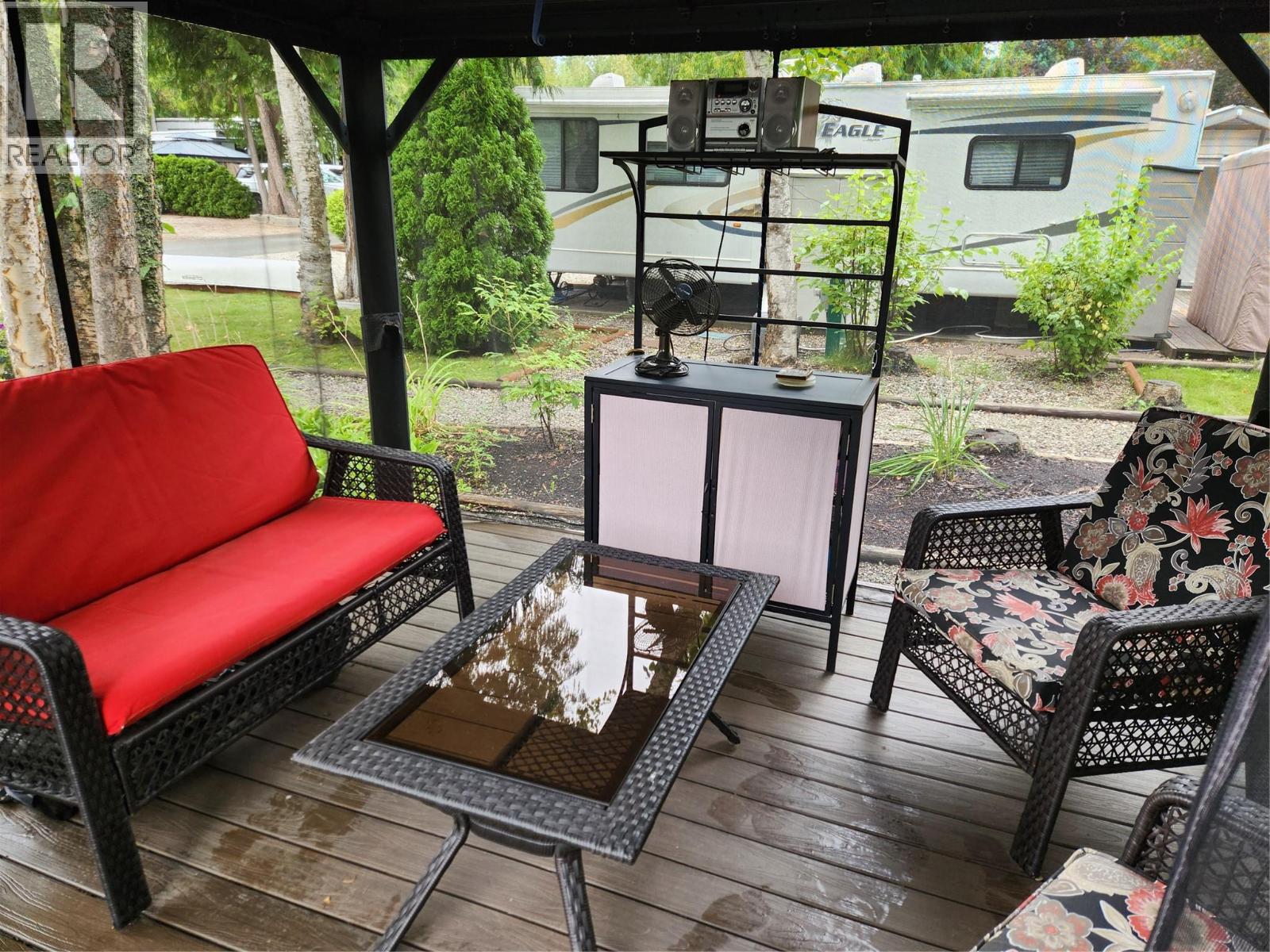 Welcome to one of the largest RV lots in the highly sought-after Caravan’s West 5 star Resort, nestled in the heart of Scotch Creek. This property backs onto peaceful green space and is ideally located near shower, laundry, and washroom facilities. Fully equipped for family enjoyment and entertaining, the lot features: An 8’ x 10’ insulated, wired bunkhouse on a concrete foundation with bunkbeds for 2–3 guests A two-level composite deck with a 10’ x 12’ screened gazebo Underground sprinklers and drip lines for easy maintenance A bonus 1999 27’ fifth wheel trailer (in good condition, sold as is) Included furnishings: gazebo furniture, swinging chair, BBQ, outdoor table and chairs Caravan’s West is a gated, professionally managed resort offering year-round or seasonal living with exceptional amenities: Lake access with dock and sandy beach Two clubhouses: adult clubhouse with pool table, rental suites, and gathering spaces; family clubhouse with games, library, playroom, kitchen, and lounge Recreation: adult-only pool/hot tub, family pool with wading pool and hot tub, water park, playground, sports court, pickleball courts Fully equipped fitness gym Located next to Shuswap Lake Provincial Park and close to grocery, pharmacy, medical services, and marina. Whether you’re seeking a year-round home base or a seasonal retreat, this rare offering combines resort-style amenities with the natural beauty of the Shuswap. (id:4069)